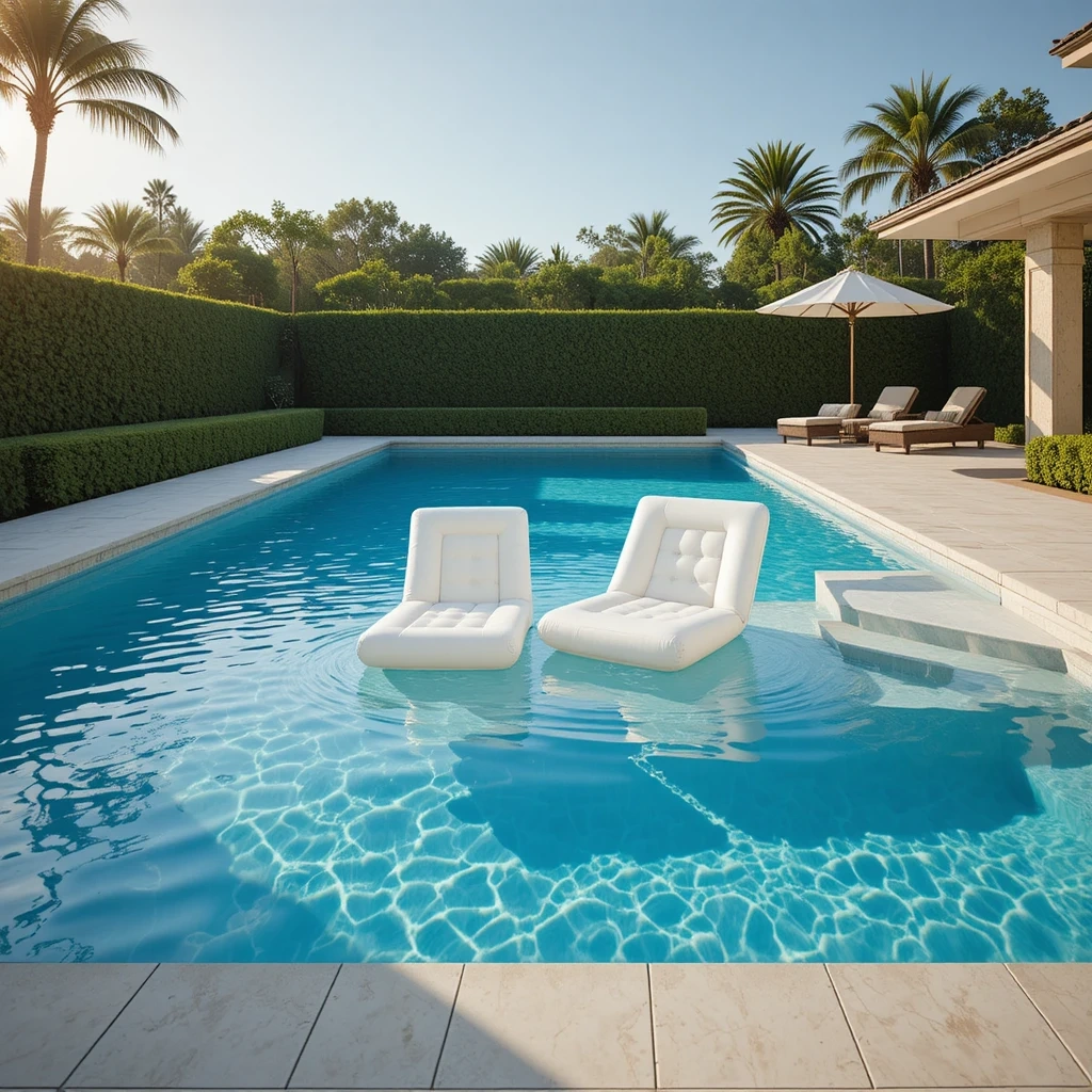 - Plant colorful potted flowers or small palms on the pool deck nearby
